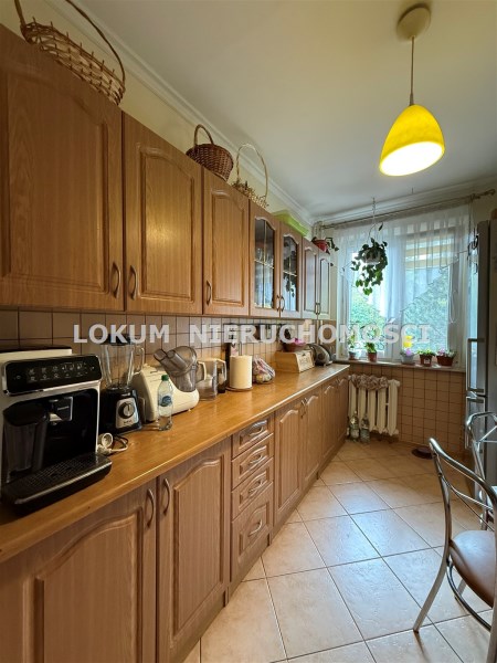 Lokal składa się trzech nieprzechodnich pokoi, kuchni z oknem, łazienki, osobnego wc, przedpokoju w kształcie litery L, balkonu oraz przynależnej piwnicy.