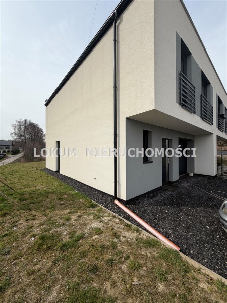 Na sprzedaż nowoczesny dom w zabudowie bliźniaczej doprowadzony do stanu deweloperskiego położony w Jastrzębiu-Zdroju na płaskiej działce o pow. ok 500 m2. Budynek wykonany z gazobetonu 24 cm, ocieplony styropianem 15 cm, otynkowany. Fundament z bloczków betonowych, izolacja pionowa 15 cm. Dach płaski, czterowarstwowy: deskowanie, płyta OSB, papa podkładowa, papa wierzchniego krycia. Okna trzyszybowe PCV w kolorze grafitowym. Rolety zewnętrzne w kolorze grafitowym. Drzwi wejściowe antywłamaniowe w kolorze grafitowym z przeszkleniem. Wykonana obróbka blacharska, orynnowanie PCV - grafit . Brama segmentowa grafitowa z napędem elektrycznym + pilot.
