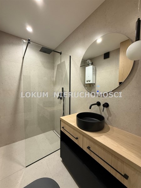 W całym mieszkaniu na podłogach położono panele, na ścianach gładzie, podwieszane sufity z oświetleniem halogenowym. W całym mieszkaniu wymieniono instalację elektryczną, wod.kan. oraz drzwi wejściowe i wewnętrzne (wymienione wraz z futrynami). Meble kuchenne na wymiar ze sprzętami t.j. piekarnik w zabudowie, mikrofalówka w zabudowie, lodówka w zabudowie, płyta indukcyjna, zmywarka, okap. Łazienka z kabiną prysznicową z odpływem liniowym (bez brodzika), liczne zabudowy z funkcją przechowywania, dzięki zainstalowaniu umywalki po przeciwnej stronie łazienka stała się bardziej przestronna i funkcjonalna. W łazience na ścianach i podłodze położono kafle o matowym wykończeniu z efektem naturalnego kamienia. W cenie mieszkania wliczono również kanapę z funkcją spania, wraz ze stolikiem kawowym, stół jadalny z czterema krzesłami.