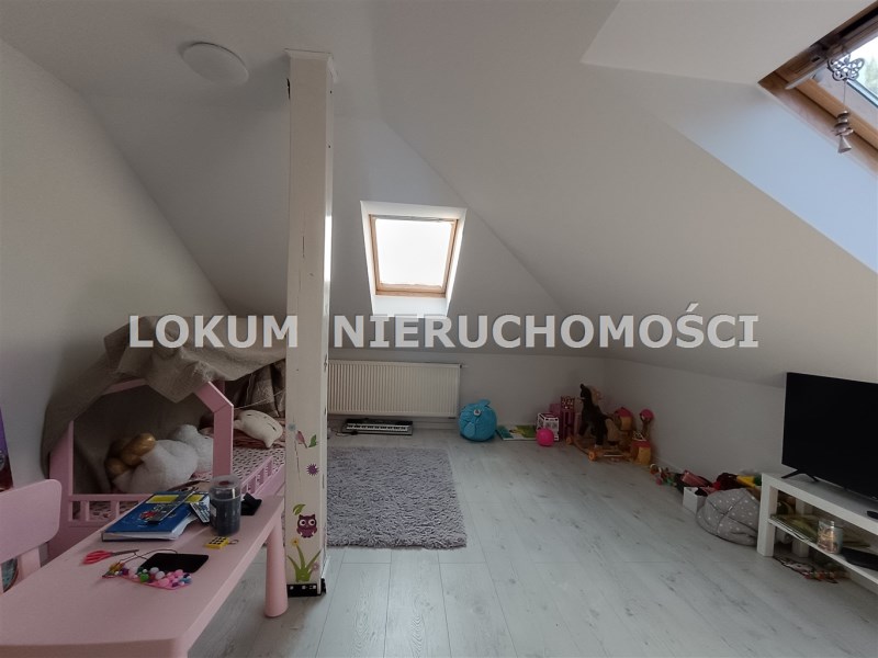 Piętro-salon, trzy pokoje, kuchnia i łazienka z kabiną. Pomieszczenia zostały urządzone w nowoczesnym stylu, posiadają skosy i okna dachowe.
