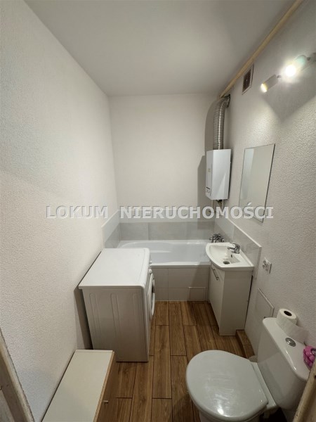 Kuchnia utrzymana jest w praktycznej zabudowie i posiada niezbędne AGD. Łazienka wyposażona została w wannę oraz pralkę. W przedpokoju znajduje się pojemna szafa w zabudowie, co ułatwia przechowywanie. Wnętrze jest jasne, utrzymane w stonowanej kolorystyce, co tworzy neutralne i komfortowe warunki do codziennego życia.