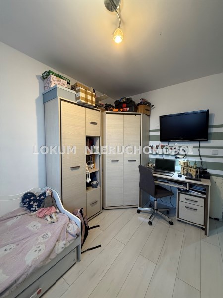 W cenie mieszkania pozostaje duża część wyposażenia: wiszące szafki w salonie, sofa ze stolikiem kawowym i pufem, stół z czterema krzesłami, pojemna szafa w przedpokoju, a w sypialni łóżko z wysokiej jakości materacem, szafa, zabudowa kuchenna wraz ze sprzętami agd. Dodatkowo – dla osoby zainteresowanej mogą pozostać sprzęt RTV (telewizory), szafa, komoda i biurko z pokoju północnego oraz dwa łóżka dziecięce.