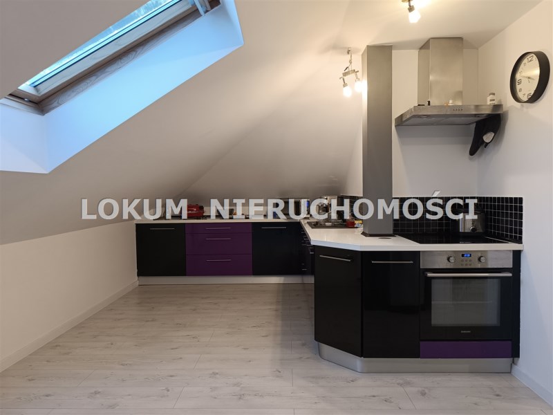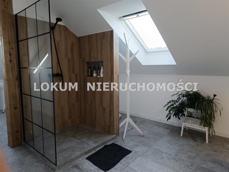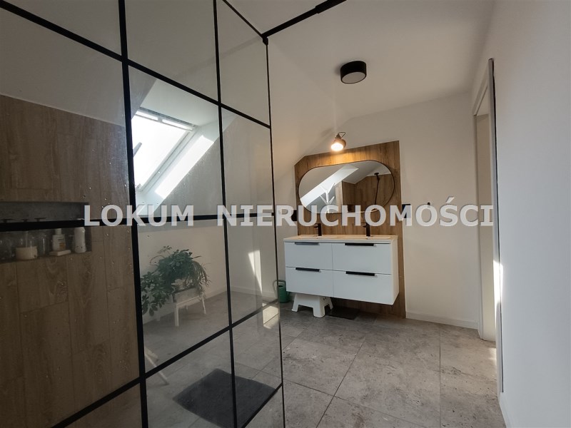 Piętro-salon, trzy pokoje, kuchnia i łazienka z kabiną. Pomieszczenia zostały urządzone w nowoczesnym stylu, posiadają skosy i okna dachowe.