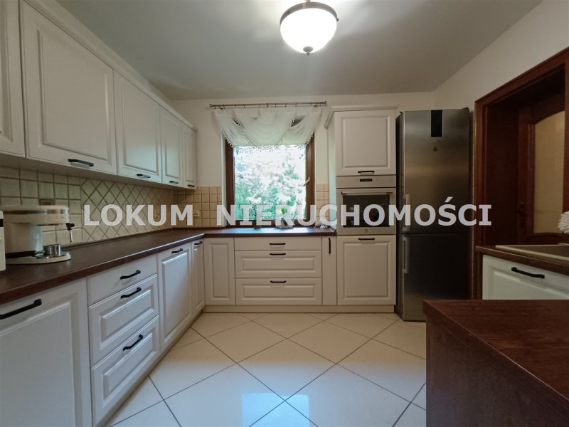 Parter- salon z wykuszem, kominkiem i wyjściem na taras, kuchnia, łazienka z kabiną prysznicową, trzy pokoje.