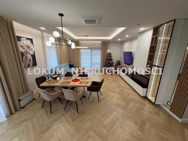 Dom został zbudowany w 2023 roku z wykorzystaniem nowoczesnych technologii: ogrzewanie i ciepła woda z pompy ciepła + fotowoltaika (oszczędny dom), energooszczędne okna aluminiowe, płaski dach + wejście na dach