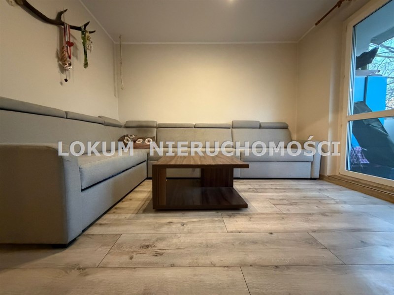 Mieszkanie składa się z dwóch nie przejściowych pokoi, salonu z wyjściem na duży balkon, otwartej częściowo kuchni, łazienki, przedpokoju oraz przynależnej piwnicy. Z balkonu widok na lasek. Blok po termomodernizacji. Okna PCV. Zadbana klatka schodowa oraz teren wokół bloku. Wejście do klatki zabezpieczone domofonem. Parking przed blokiem. Mieszkanie dwustronne, jasne. Dogodna lokalizacja. Cicha i spokojna okolica. W pobliżu szkoła podstawowa, market spożywczy, galeria handlowa, plac zabaw, jar południowy, ośrodek wypoczynku niedzielnego. W cenie mieszkania zostaje kuchnia ze sprzętami AGD t.j. zmywarka, piekarnik w zabudowie, mikrofalówka w zabudowie, płyta indukcyjna, trzy funkcjonalne szafy, pralko-suszarka.