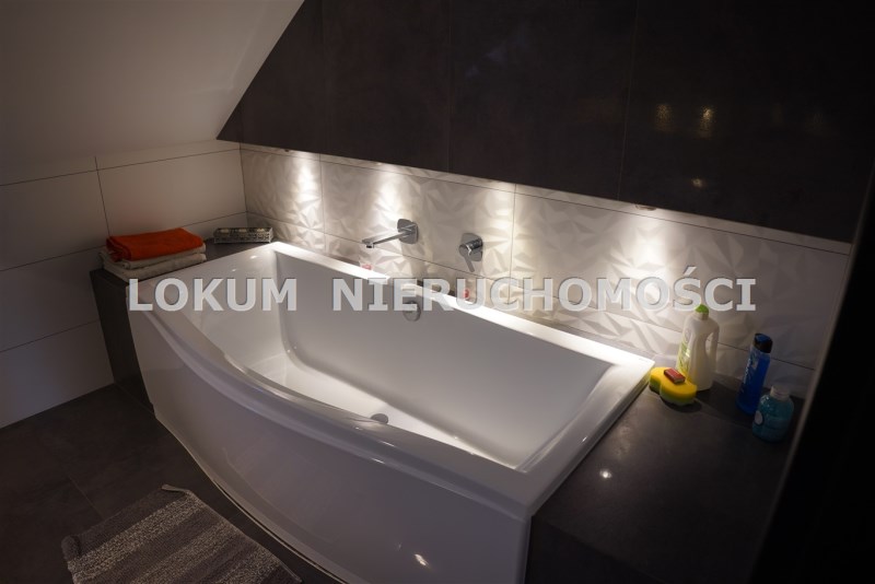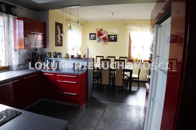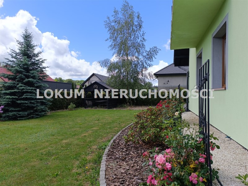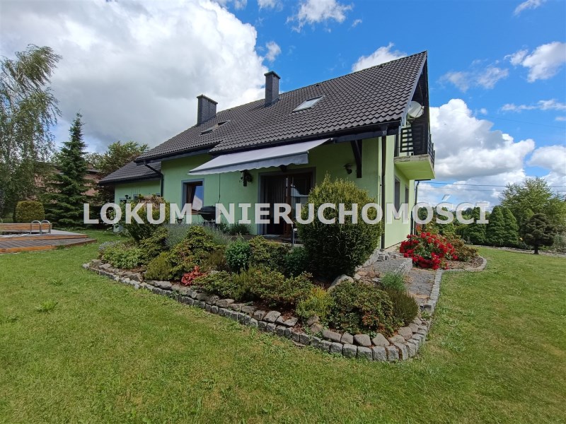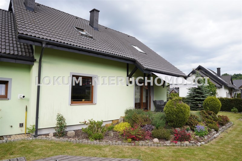 Dom o powierzchni 146m2 został wybudowany z materiałów wysokiej jakości, posiada funkcjonalny rozkład pomieszczeń, nie wymaga żadnych nakładów finansowych. W bryle budynku znajduje się dwustanowiskowy garaż z automatyczną bramą. Działka ogrodzona, zagospodarowana, z licznymi nasadzeniami zasilanymi w wodę systemem nawadniającym.