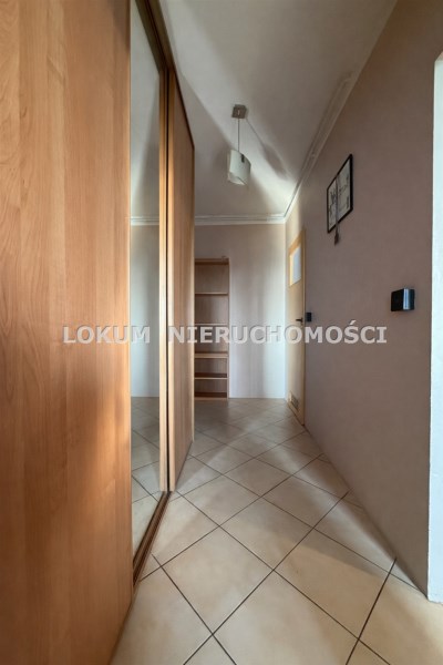 Mieszkanie składa się z pokoju dziennego z wyjściem na duży balkon, pokoju (sypialni), kuchni, łazienki, przedpokoju oraz przynależnej komórki znajdującej się na tym samym piętrze. Na ścianach położono gładzie, na podłogach panele oraz płytki. Łazienka w kafelkach, na wyposażeniu wanna. Kuchnia umeblowana razem ze sprzętami AGD - kuchenka gazowa, piekarnik, lodówka. W przedpokoju duża, pojemna szafa. Mieszkanie jest dobrze nasłonecznione, funkcjonale. Okna drewniane. Blok po termomodernizacji, duży parking przed budynkiem, wejście do klatki zabezpieczone domofonem.