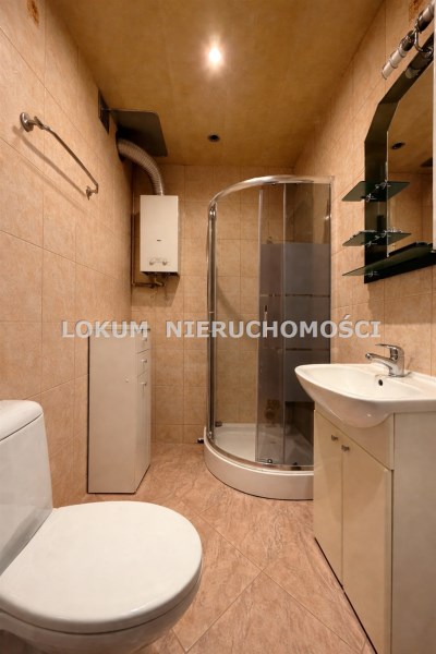Kuchnia umeblowana wraz ze sprzętami AGD, na podłodze oraz ścianach kafle. Łazienka w glazurze na wyposażeniu prysznic, junkers oraz sanitariaty.