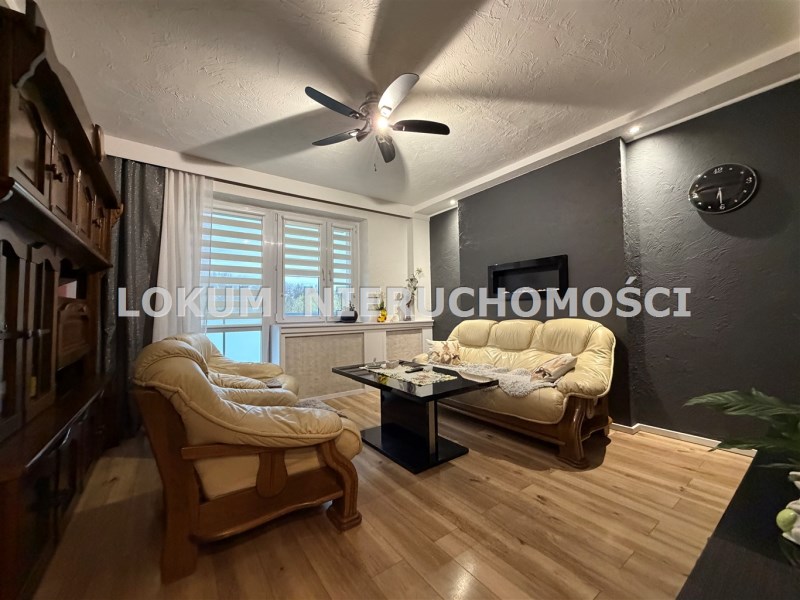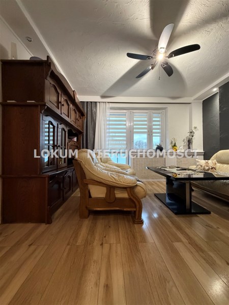 W skład mieszkania wchodzą: cztery pokoje (z jednego wyjście na balkon z widokiem na przestrzeń), kuchnia, łazienka, przedpokój i piwnica. W pokojach na ścianach gładź i tynk strukturalny na podłodze panele i kafle. Kuchnia z oknem, na wyposażeniu zabudowa kuchenna ze sprzętem AGD t.j. zmywarka, lodówka, piekarnik i płyta gazowa. Łazienka cała w glazurze, na wyposażeniu wanna junkers oraz sanitariaty.