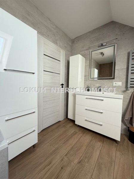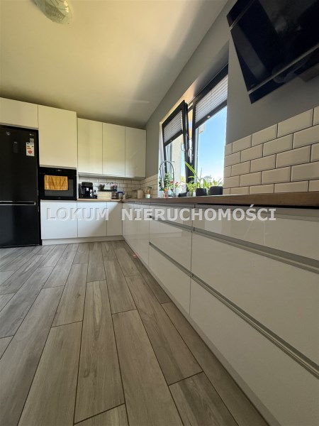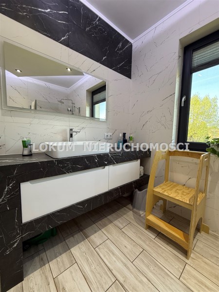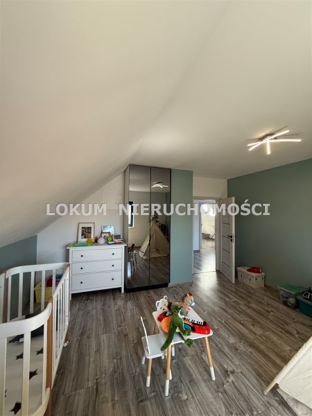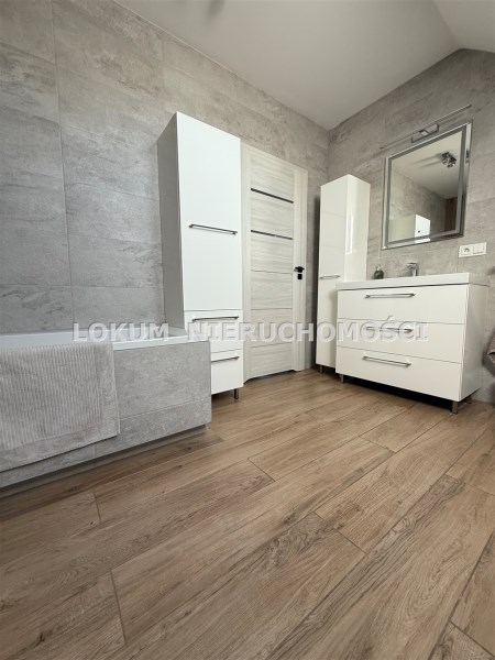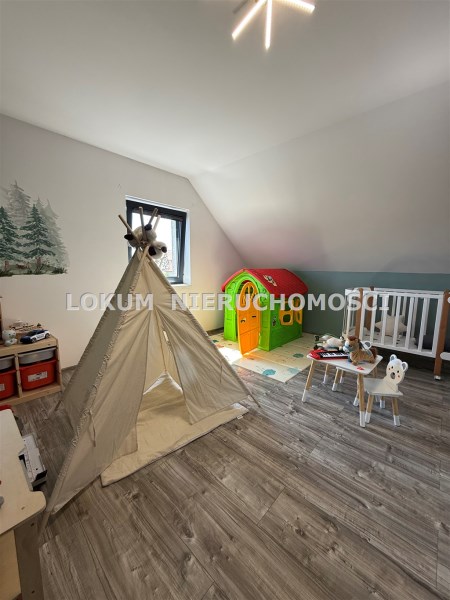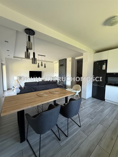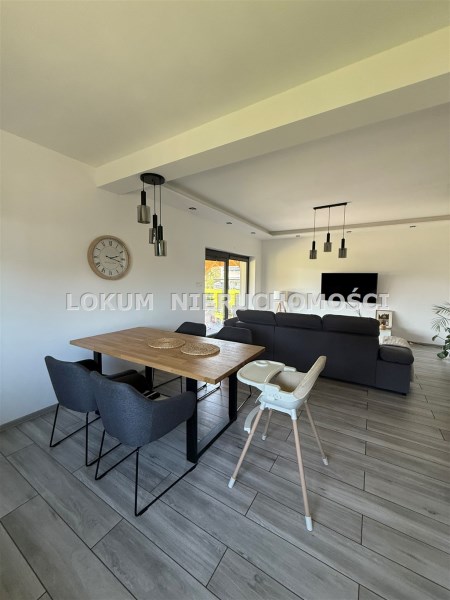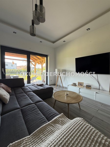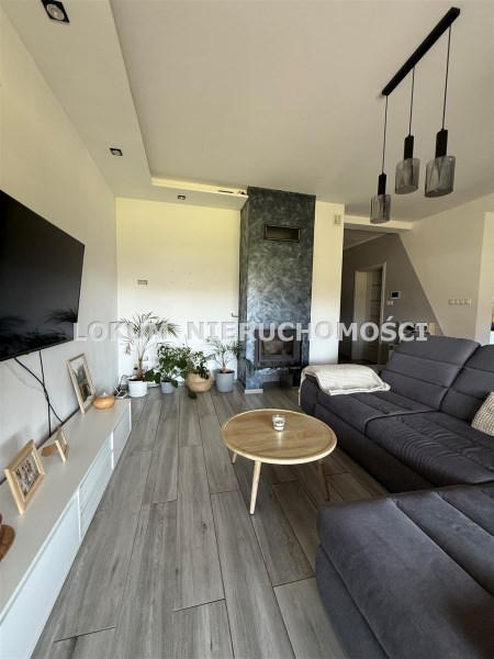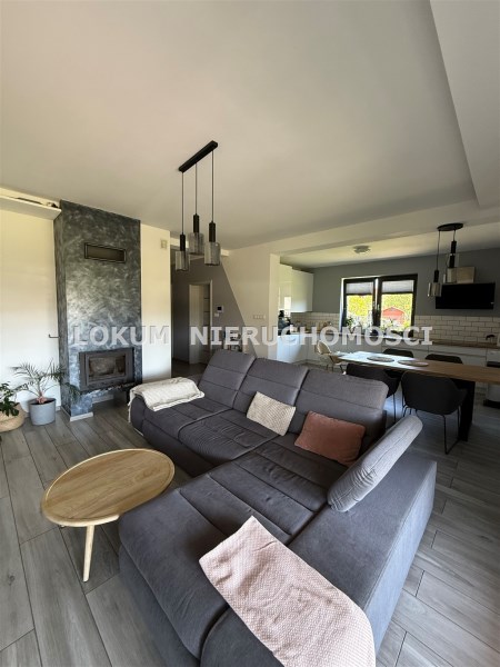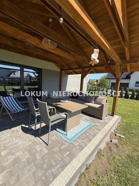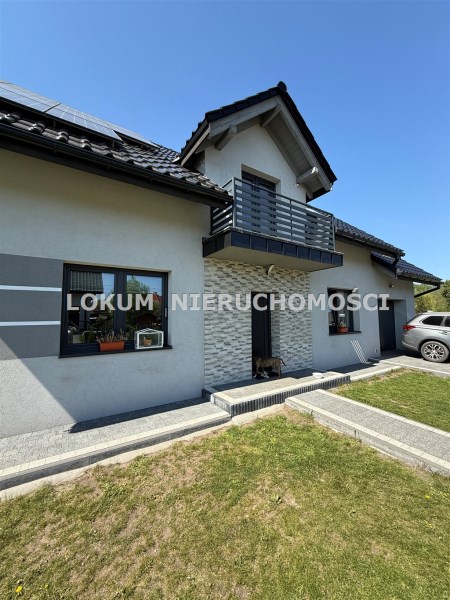 Dom o powierzchni użytkowej 150m2 został wybudowany z materiałów wysokiej jakości, jest funkcjonalny, nie wymaga żadnych nakładów finansowych. W bryle budynku znajduje się jednostanowiskowy garaż. Działka ogrodzona, z automatyczną brama wjazdową, drewnianą pergolą.