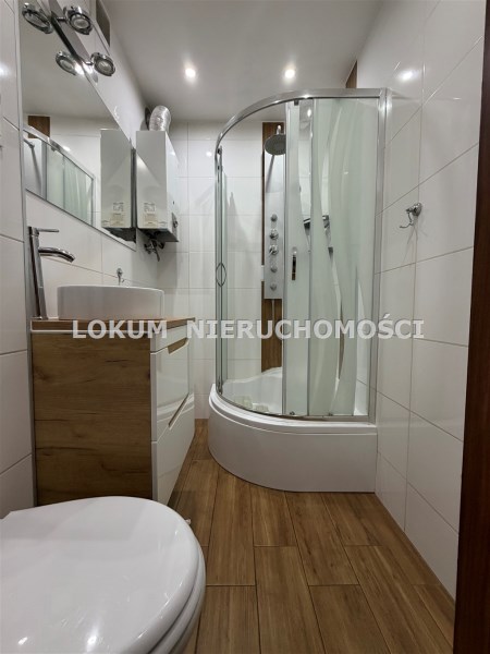 - łazienka w glazurze na wyposażeniu sanitariaty, prysznic oraz junkers.
