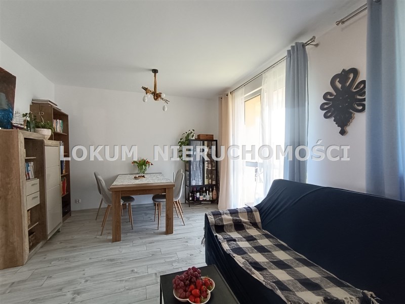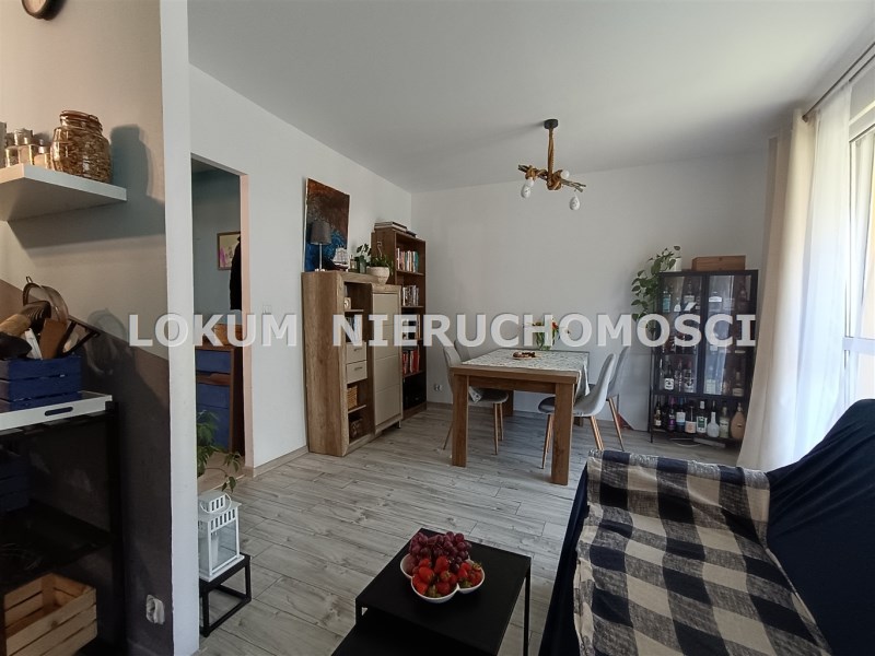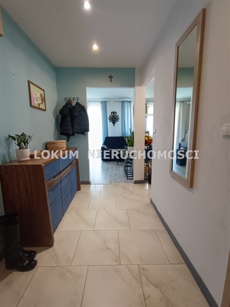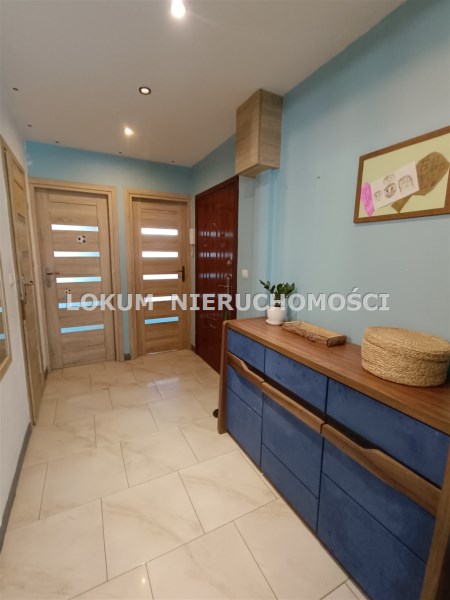 W skład mieszkania wchodzą: trzy pokoje, przedpokój, kuchnia, łazienka z toaletą, wykafelkowany balkon i przynależna piwnica. W całym mieszkaniu na ścianach gładzie, na podłogach panele i kafle. Kuchnia częściowo otwarta na salon , meble kuchenne wraz ze sprzętem AGD ( płyta gazowa, piekarnik elektryczny, okap).
