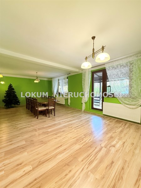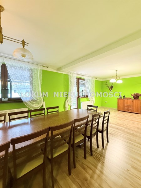 Dom o powierzchni całkowitej 360m2, użytkowej 287,25m2, wybudowany z pustaków. Dach wielospadowy kryty blachą. Dodatkowym atutem jest wolnostojący budynek gospodarczy obok domu. Dojazd drogą asfaltową gminną.
