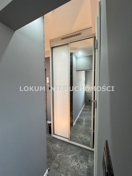 Mieszkanie jest po remoncie. Wymieniono podłogi, drzwi i oświetlenie, wykonano podwieszane sufity. W przedpokoju znajduje się duża szafa w zabudowie z lustrami, a w pokoju zamontowano drugą szafę z frontami w połysku oraz lustrem.